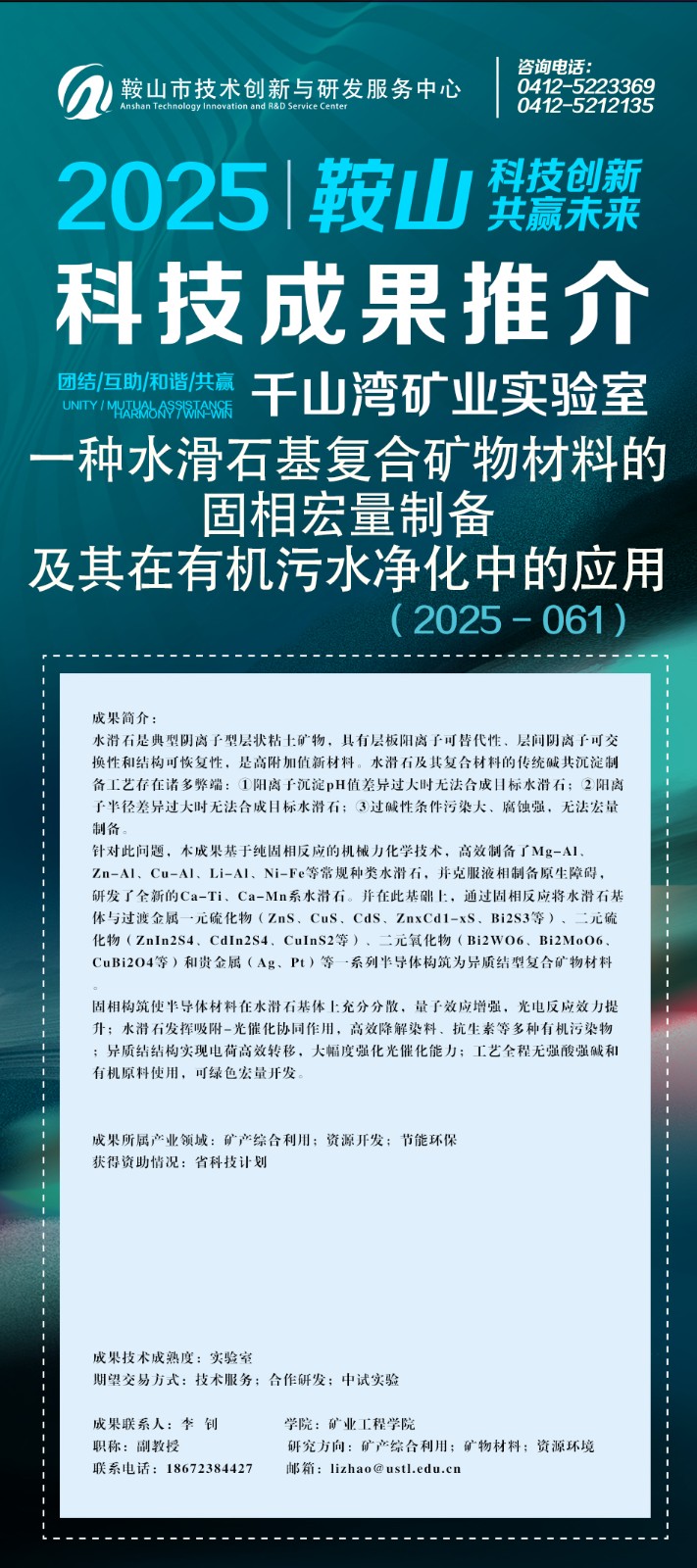 鞍山科技成果网上推介(2025年第七期)